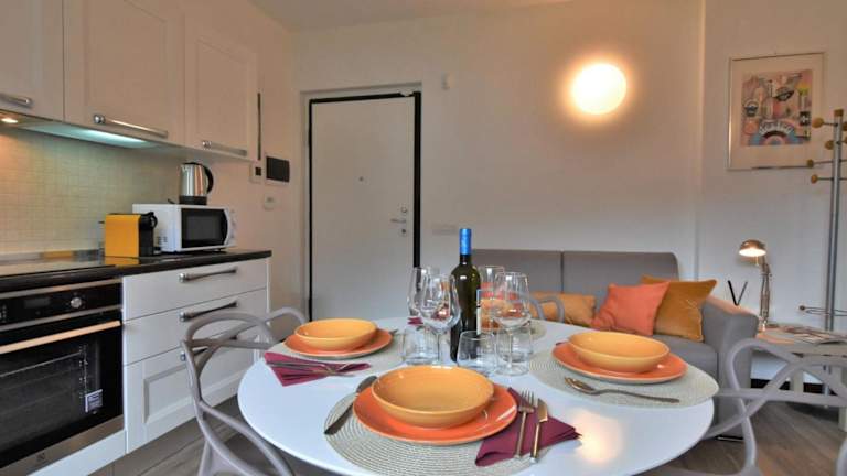 Das Apartment umfasst ein Schlafzimmer, ein Wohnzimmer sowie eine voll ausgestattete Küchenzeile mit Kühlschrank und Kaffeemaschine. Zudem gibt es ein Badezimmer mit Bidet und Dusche. Zur weiteren Ausstattung gehören ein TV und die Bereitstellung von Bettwäsche, Handtüchern und Wäsche gemäss den Richtlinien der örtlichen Behörden.