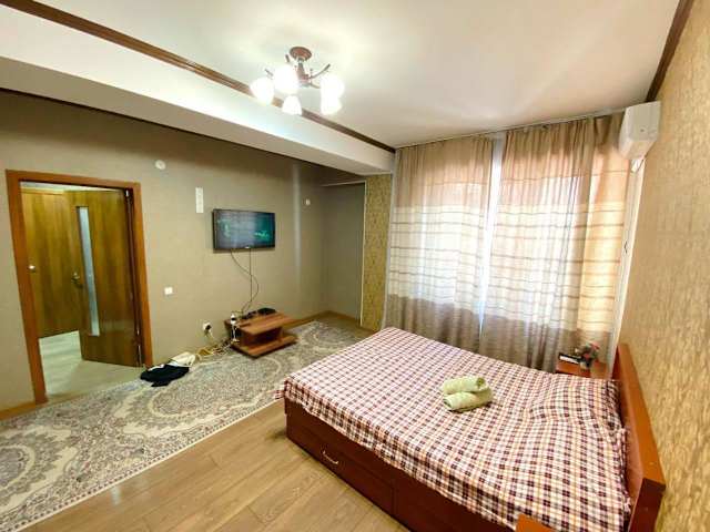Die Unterkunft apartment on Orozbekova st 2/2 ist gelegen in Bischkek. Der Flughafen Manas ist 28 km entfernt. Die Umgebung bietet eine ruhige Atmosphäre mit Blick auf den Garten.