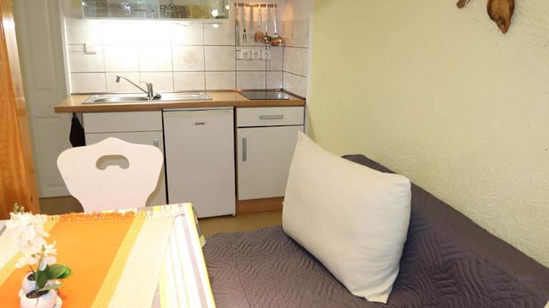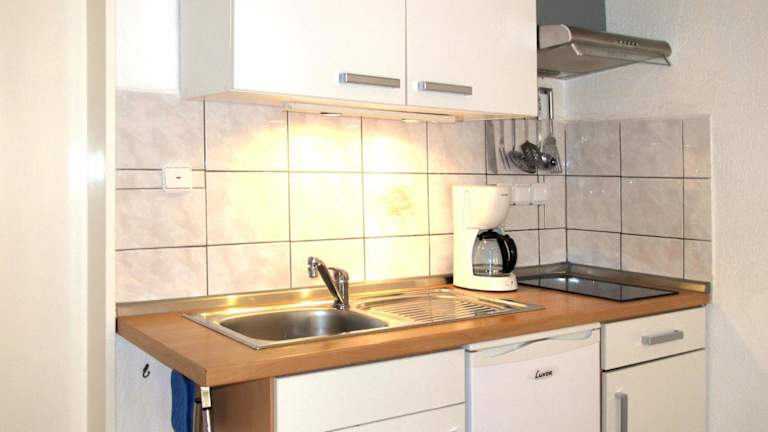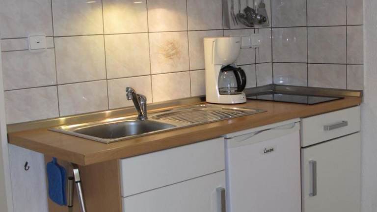 Die Ferienwohnung ist ausgestattet mit einer gut ausgestatteten Küche, die einen Kühlschrank und Geschirrspüler umfasst. Grillmöglichkeiten stehen zur Verfügung.
