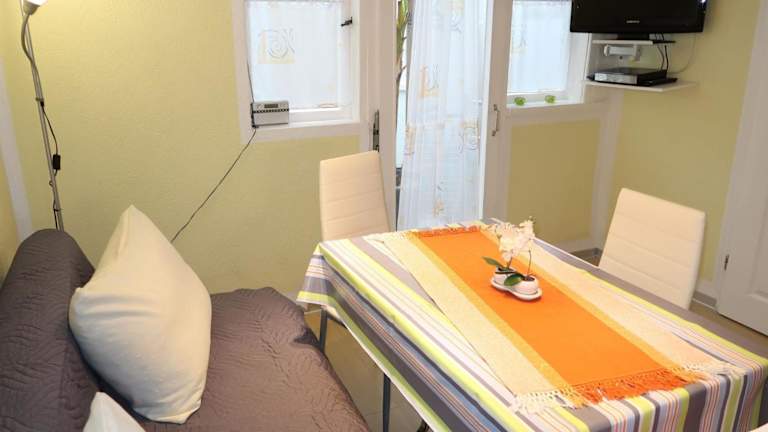 Die Ferienwohnung bietet 2 Schlafzimmer, einen TV mit Satellitenkanälen sowie 1 Badezimmer mit Dusche. Es besteht die Möglichkeit, Bettwäsche zu mieten oder eigene mitzubringen. Zudem steht ein kostenloses Babybett zur Verfügung.