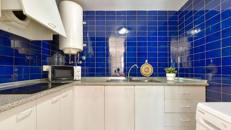 Die Wohnung bietet zwei Schlafzimmer und ist mit einem TV mit Satellitenkanälen ausgestattet. Eine gut eingerichtete Küche mit Kühlschrank und Mikrowelle ist vorhanden, ebenso wie ein Badezimmer mit Dusche.