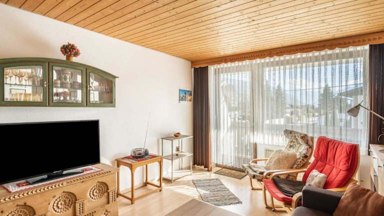Die Ferienwohnung bietet einen Balkon mit Bergblick, ein Schlafzimmer, ein Wohnzimmer sowie einen TV. Die gut ausgestattete Küchenzeile verfügt über einen Kühlschrank und eine Herdplatte, während das Badezimmer mit einer Badewanne ausgestattet ist. Handtücher und Bettwäsche können gegen Gebühr ausgeliehen werden.