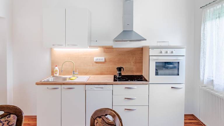 Das Apartment besteht aus 2 Schlafzimmern, einem Wohnzimmer und einer voll ausgestatteten Küche, die über einen Kühlschrank und eine Kaffeemaschine verfügt. Es gibt ein Badezimmer mit Dusche und Haartrockner. Handtücher und Bettwäsche werden ebenfalls bereitgestellt.
