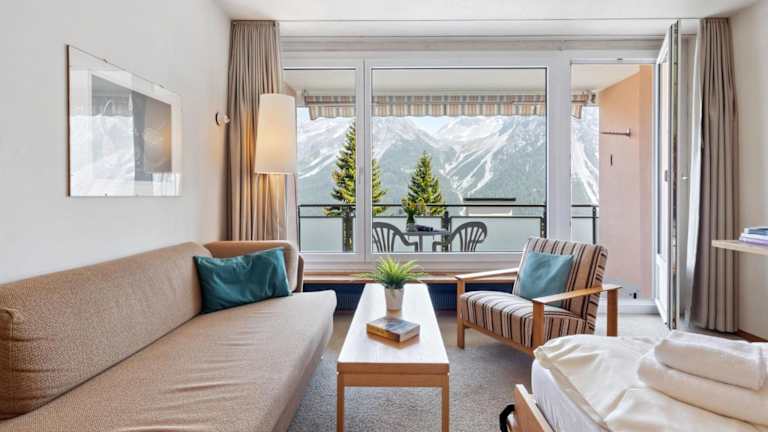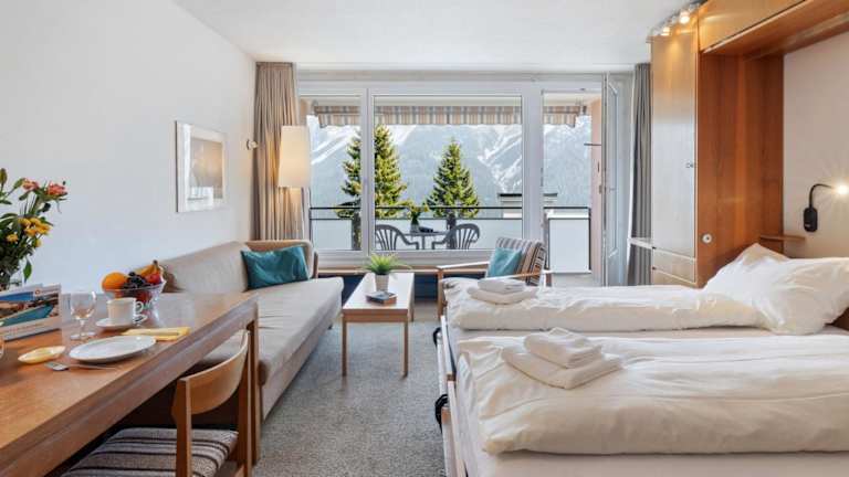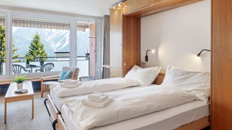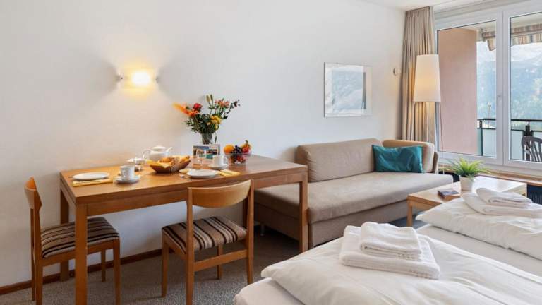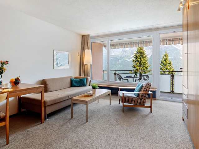 Das Apartment ist ausgestattet mit einem Wohnzimmer sowie einer voll ausgestatteten Küchenzeile, die über einen Kühlschrank und einen Ofen verfügt. Ein TV sorgt für Unterhaltung. Auf Wunsch kann ein Babybett und ein Zustellbett gegen Aufpreis zur Verfügung gestellt werden.