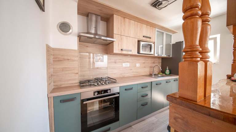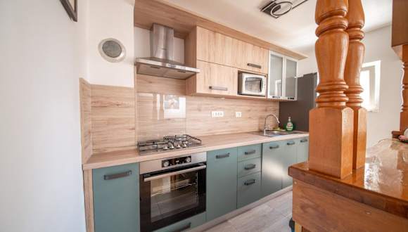 In der Unterkunft steht Ihnen eine voll ausgestattete Küche zur Verfügung, in der Sie Mahlzeiten zubereiten können. Die Ausstattung umfasst unter anderem einen Kühlschrank, einen Ofen, eine Mikrowelle, eine Herdplatte sowie eine Kaffeemaschine und einen Wasserkocher.