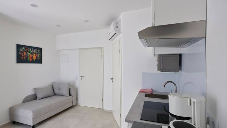 Die Ferienwohnung besteht aus einem Schlafzimmer, einem Wohnzimmer und einer voll ausgestatteten Küche, die mit einem Kühlschrank und einer Kaffeemaschine ausgestattet ist. Sie verfügt über ein Badezimmer mit einer Dusche und einem Haartrockner. Die Unterkunft bietet schallisolierte Zimmer, Allergikerfreundliche Zimmer und ist mit Klimaanlage ausgestattet. Gartenmöbel sind ebenfalls vorhanden. Bettwäsche, Handtücher und Wäsche werden nach Richtlinien der örtlichen Behörden gewaschen.