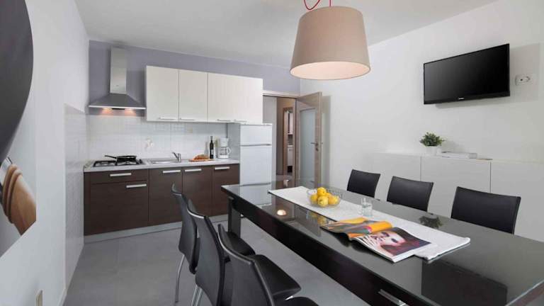 Das Apartment bietet einen Balkon, drei Schlafzimmer sowie ein Wohnzimmer. Zur Ausstattung gehört ein Fernseher, was für eine angenehme Freizeitgestaltung sorgt.