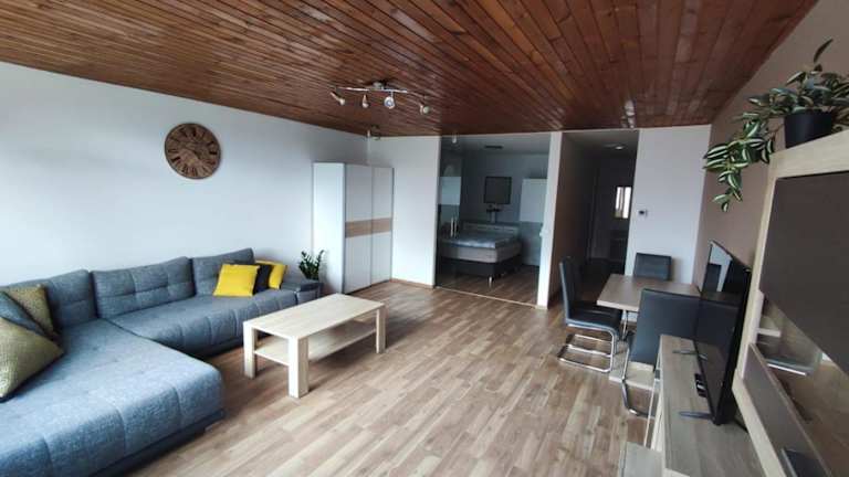 Die Ferienwohnung verfügt über ein Schlafzimmer und ein Wohnzimmer mit einem Flachbild-TV. Die gut ausgestattete Küche beinhaltet einen Kühlschrank und einen Ofen. Es gibt ein Badezimmer mit einer Badewanne sowie eine Terrasse mit Bergblick. Handtücher und Bettwäsche werden bereitgestellt.