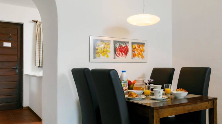 Die Ferienwohnung ist eingerichtet mit einem Wohnzimmer und einer voll ausgestatteten Küche, die mit einem Kühlschrank und einem Ofen ausgestattet ist. Ein Flachbild-TV mit Kabelkanälen sorgt für Unterhaltung. Auf Anfrage ist ein Babybett erhältlich.