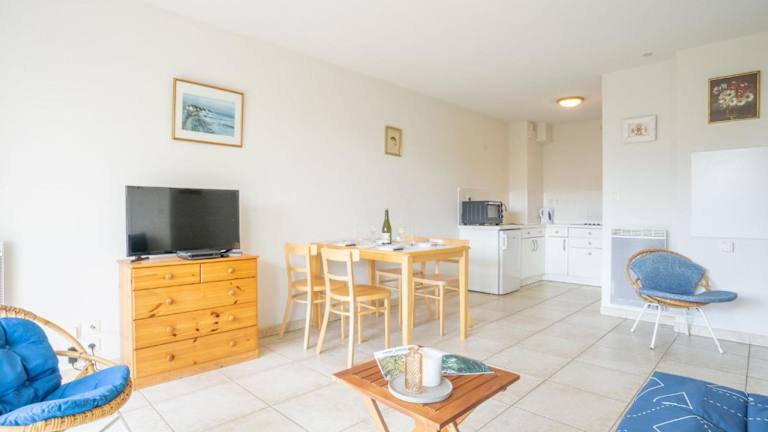 Die Ferienwohnung besteht aus einem Schlafzimmer, einem Wohnzimmer, einer voll ausgestatteten Küche mit Kühlschrank und Kaffeemaschine sowie einem Badezimmer mit Badewanne oder Dusche. Ein TV ist ebenfalls vorhanden. Handtücher und Bettwäsche können gemietet werden, jedoch auch selbst mitgebracht werden.