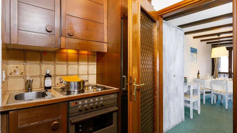 Die Ferienwohnung umfasst ein Schlafzimmer, ein Wohnzimmer sowie eine voll ausgestattete Küchenzeile mit Kühlschrank und Kaffeemaschine. Des Weiteren verfügt sie über ein Badezimmer mit Badewanne und einen TV.