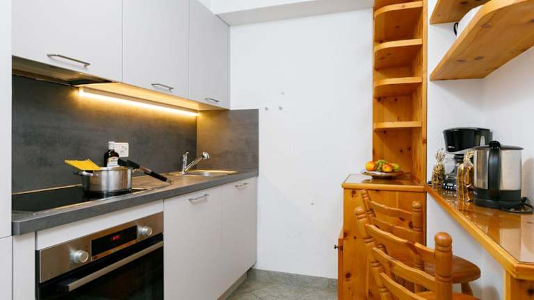 Die Ferienwohnung besteht aus einem Schlafzimmer, einem Wohnzimmer, einer voll ausgestatteten Küche mit Kühlschrank und Kaffeemaschine sowie einem Badezimmer mit Bidet und Dusche. Ein TV mit Kabelkanälen sorgt für Unterhaltung.