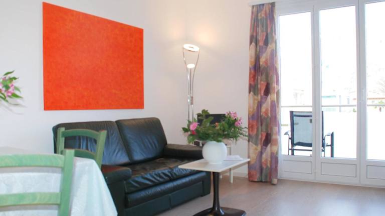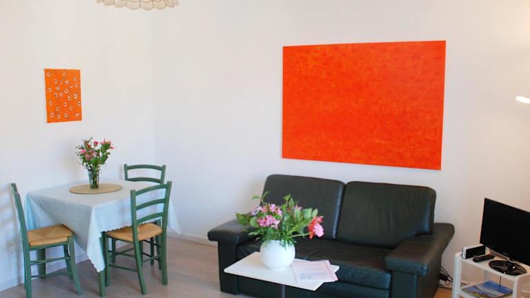 Die Ferienwohnung ist ausgestattet mit einem Wohnzimmer sowie einer voll ausgestatteten Küchenzeile, die einen Kühlschrank und eine Herdplatte umfasst. Ein Flachbild-TV mit Kabelkanälen ist ebenfalls vorhanden. Gegen Aufpreis kann ein Babybett bereitgestellt werden.