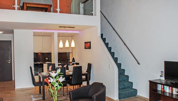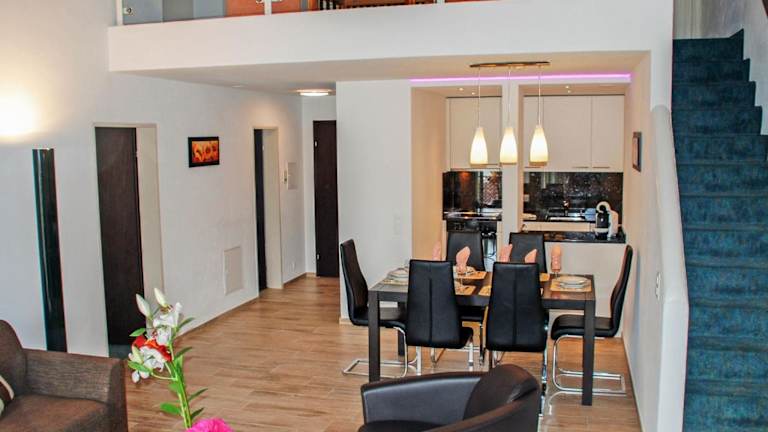 Die Ferienwohnung umfasst 2 Schlafzimmer, ein Wohnzimmer mit TV, eine gut ausgestattete Küche mit Kühlschrank und Geschirrspüler, sowie 2 Badezimmer mit Badewanne. Auch eine Terrasse mit Bergblick steht zur Verfügung. Die Unterkunft bietet eine Babybetten auf Anfrage an.