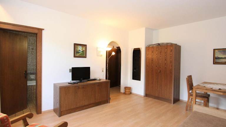 Die Ferienwohnung verfügt über eine Küchenzeile, die mit Kühlschrank und Ofen ausgestattet ist. Des Weiteren erwarten die Gäste Satelliten-TV sowie kostenfreies WLAN.
