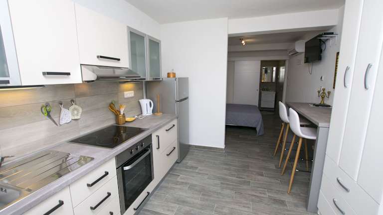 Die Ferienwohnung verfügt über einen TV und ist mit einer gut ausgestatteten Küche versehen, die einen Kühlschrank, einen Ofen und eine Herdplatte umfasst. Ein Haartrockner steht ebenfalls zur Verfügung.