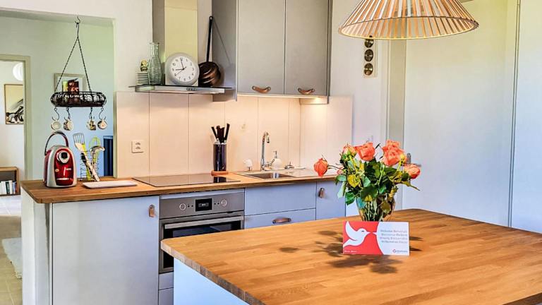 Die Ferienwohnung verfügt über ein Schlafzimmer, ein Wohnzimmer mit TV sowie eine gut ausgestattete Küche mit Kühlschrank und Ofen. Ein Badezimmer mit Dusche ergänzt die Ausstattung. Zusätzlich sind Bettwäsche, Handtücher und Wäsche im Preis inbegriffen.
