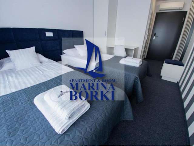 Apartment & Room MARINA BORKI - Pokoje hat kostenfreies WLAN und eine Klimaanlage. Die Unterkunft bietet eine Terrasse, einen Garten und einen eigenen Strandbereich sowie die Möglichkeit zur Anmietung von Kanus. Zudem finden Gäste in der Unterkunft Nichtraucherzimmer. Ein grösserer Eindruck wird durch die geschmackvolle europäische Küche im Restaurant vermittelt.