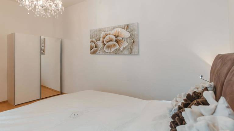 Die Ferienwohnung bietet zwei Schlafzimmer, einen Fernseher mit Kabelkanälen sowie eine gut ausgestattete Küche mit Kühlschrank und Geschirrspüler. Ein Badezimmer mit Dusche ist ebenfalls vorhanden.