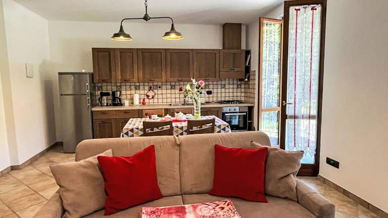 Die Ferienwohnung umfasst zwei Schlafzimmer, ein Wohnzimmer, einen Balkon mit Bergblick, einen Satelliten TV sowie eine gut ausgestattete Küche. Zudem steht ein Badezimmer mit einem Bidet und einer Dusche zur Verfügung. Für Gäste sind zwei Babybetten sowie ein Extrabett kostenfrei verfügbar.