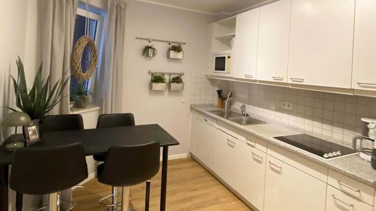 Die Ferienwohnung ist mit 2 Schlafzimmern, einem TV mit Kabelkanälen und einer voll ausgestatteten Küche ausgestattet. Diese Küche beinhaltet einen Kühlschrank, einen Geschirrspüler, eine Waschmaschine, einen Ofen und eine Mikrowelle.