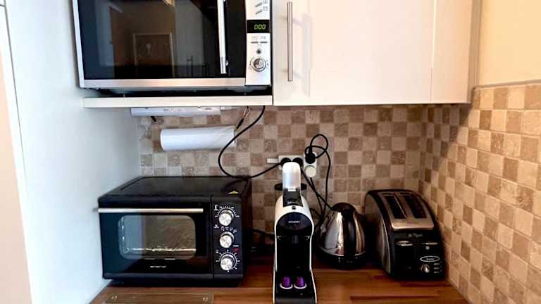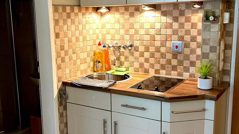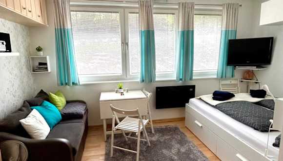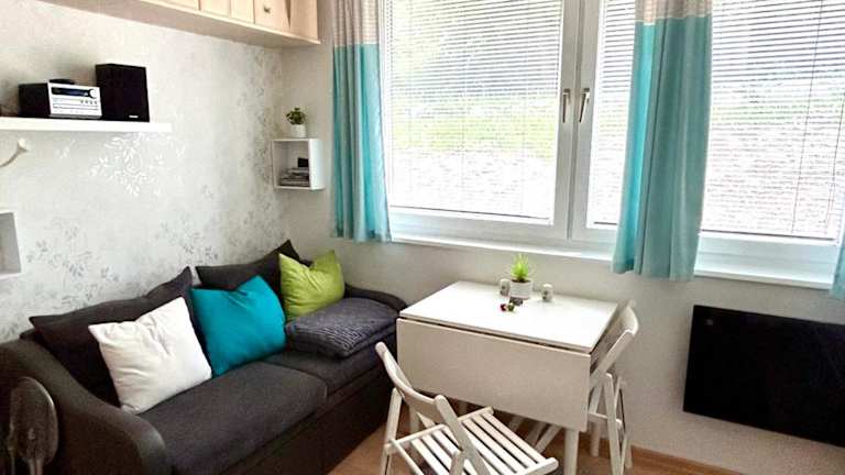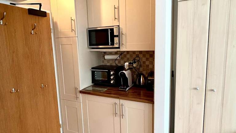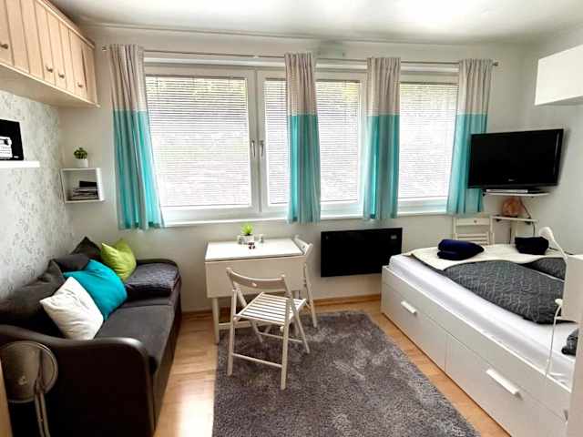 Die Ferienwohnung verfügt über ein Schlafzimmer, eine Küche mit Kühlschrank und Ofen sowie ein Badezimmer mit Dusche, Haartrockner und Waschmaschine. Handtücher und Bettwäsche werden bereitgestellt, zudem sind die Zimmer schallisoliert und bieten eine heimelige Atmosphäre.