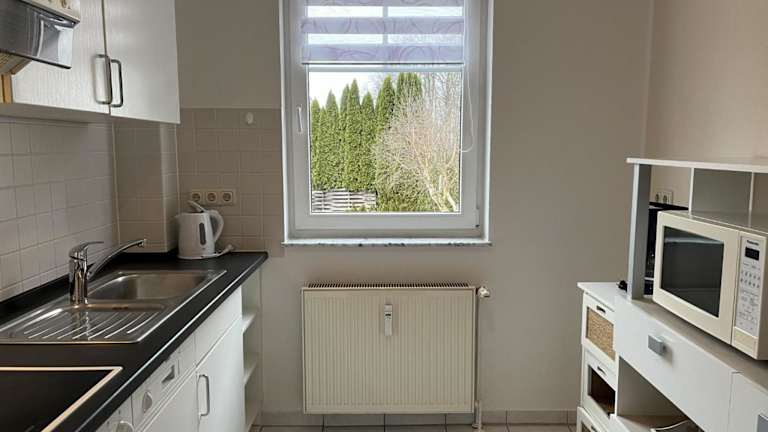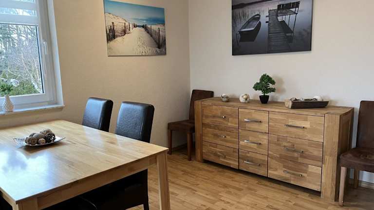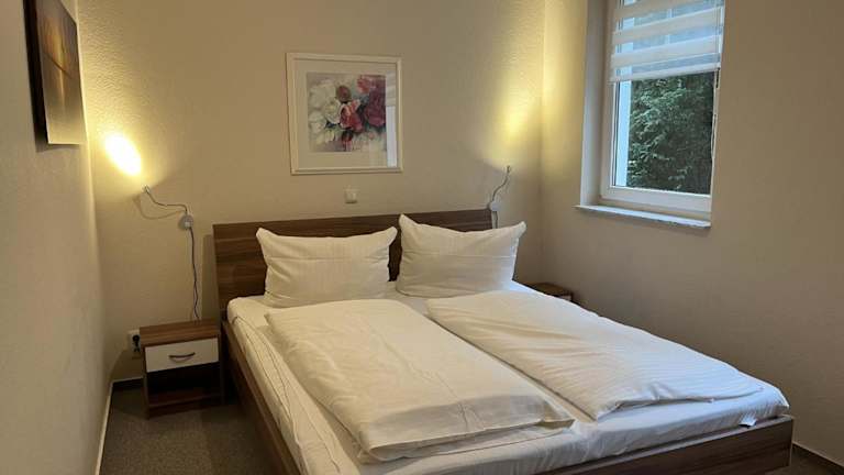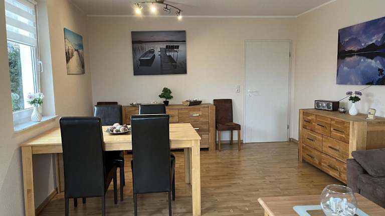 Die Ferienwohnung verfügt über ein Schlafzimmer sowie ein Wohnzimmer mit einem Kabel-TV. Eine voll ausgestattete Küche mit Kühlschrank und Geschirrspüler ist ebenfalls vorhanden. Das Badezimmer ist mit einer Dusche ausgestattet. Es besteht die Möglichkeit, ein Babybett kostenfrei bereitzustellen.
