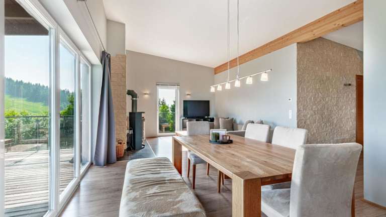 Die Ferienwohnung bietet Platz für bis zu sechs Gäste und hat 3 Schlafzimmer. Sie ist ausgestattet mit einem Flachbild-TV mit Satellitenkanälen, einer gut ausgestatteten Küche mit Kühlschrank und Geschirrspüler sowie 2 Badezimmern mit Dusche. Zudem sorgt ein Balkon dafür, dass Gäste die frische Bergluft geniessen können.