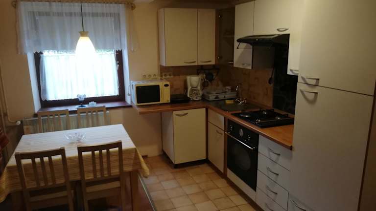 Die Ferienwohnung bietet Platz in zwei Schlafzimmern sowie einem Wohnzimmer. Sie verfügt über eine voll ausgestattete Küche mit Kühlschrank und Kaffeemaschine. Das Bad ist mit einer Dusche und kostenlosen Pflegeprodukten ausgestattet. Handtücher und Bettwäsche werden bereitgestellt, und allergikerfreundliche Zimmer sind ebenfalls verfügbar.