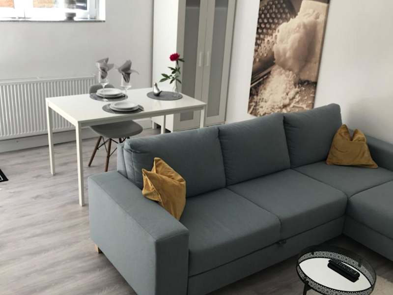 Die Ferienwohnung bietet ein Schlafzimmer, ein Wohnzimmer mit einem Flachbild-TV, eine gut ausgestattete Küche inklusive Kühlschrank und Geschirrspüler sowie ein Badezimmer mit einer Dusche. Handtücher und Bettwäsche werden bereitgestellt.