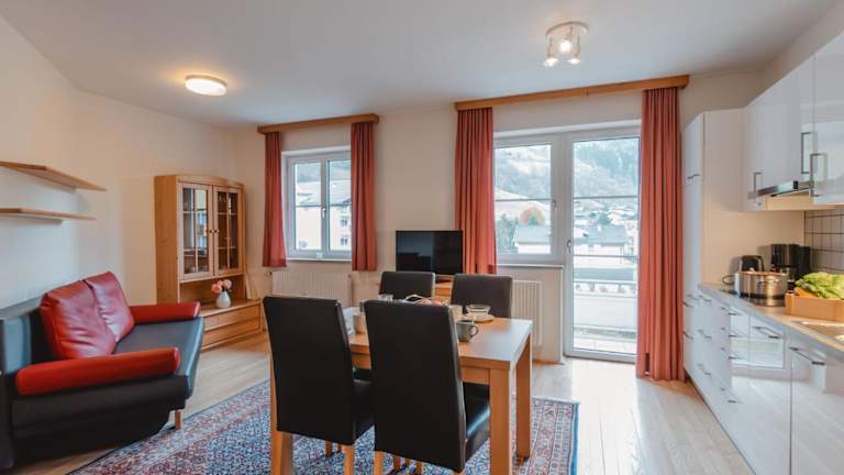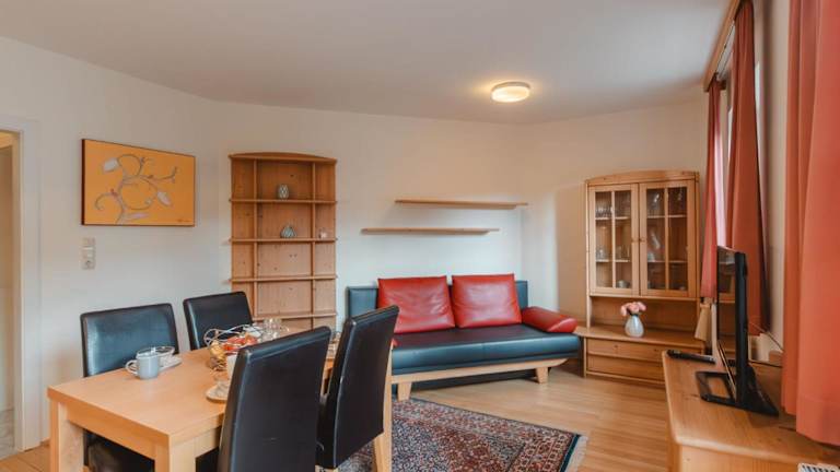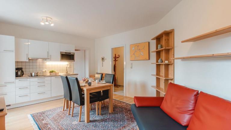 Die Ferienwohnung umfasst ein Schlafzimmer, ein Wohnzimmer mit Flachbild-TV, eine gut ausgestattete Küche mit Kühlschrank und Geschirrspüler sowie ein Badezimmer mit Badewanne oder Dusche.
