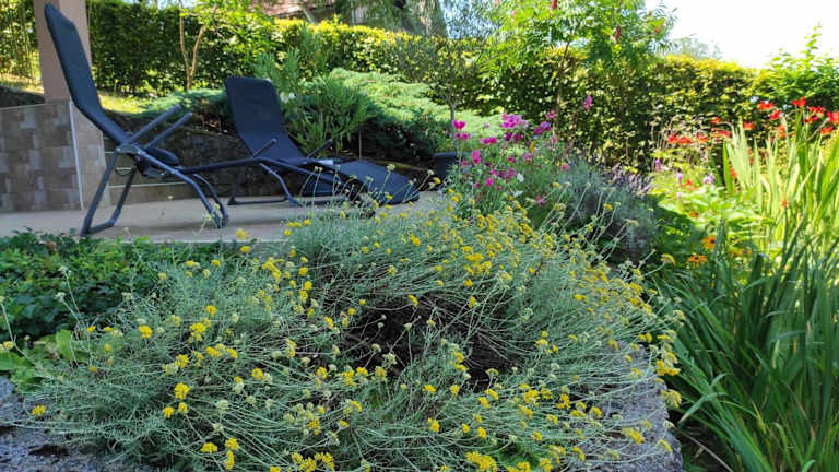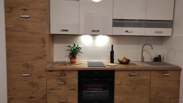 Die Ferienwohnung verfügt über ein Schlafzimmer und ein Badezimmer. Zur Ausstattung gehören Bettwäsche, Handtücher, ein Flachbild-TV, ein Essbereich sowie eine voll ausgestattete Küche. Das Zimmer bietet einen Ausblick auf die Terrasse mit Gartenblick.