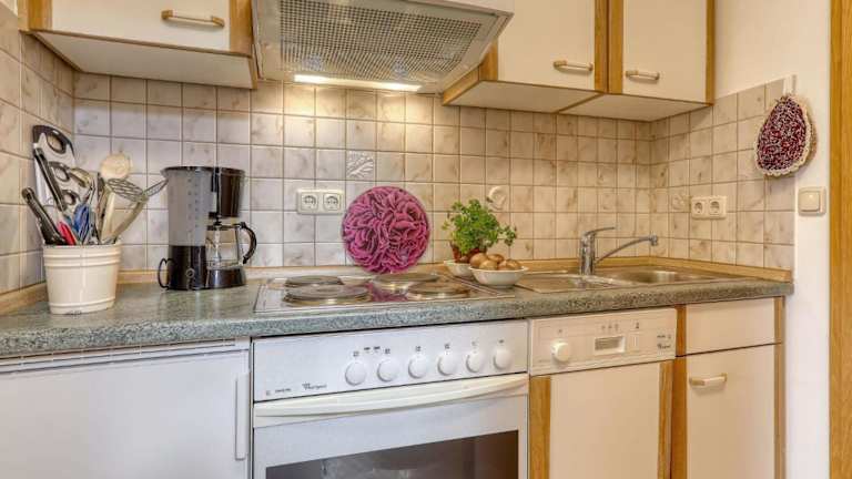 Die Unterkunft bietet eine Küchenzeile, ausgestattet mit einem Kühlschrank und einem Geschirrspüler, zur Selbstverpflegung der Gäste. Grillmöglichkeiten stehen ebenfalls zur Verfügung.