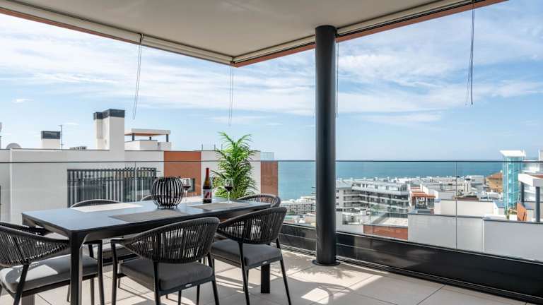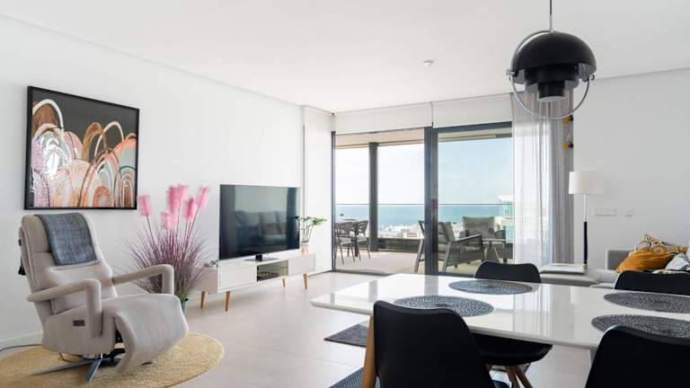 Das Apartment hat 3 Schlafzimmer, ein Wohnzimmer mit Flachbild-TV, eine gut ausgestattete Küche mit Kühlschrank und Geschirrspüler sowie 2 Badezimmer mit Dusche. Handtücher und Bettwäsche werden bereitgestellt, und die Unterkunft bietet eine Terrasse mit Meerblick.