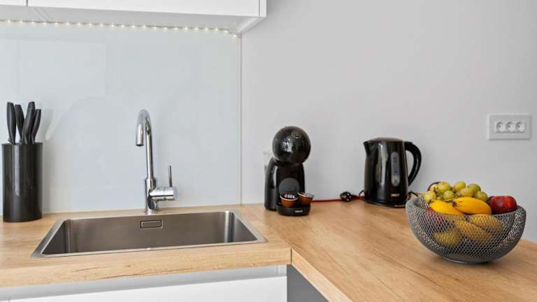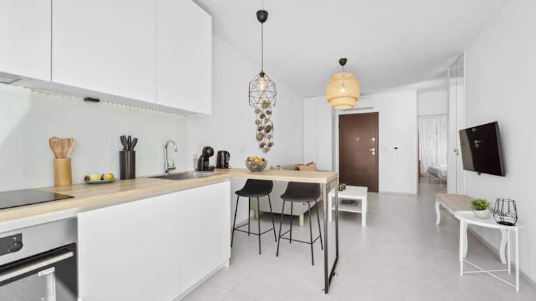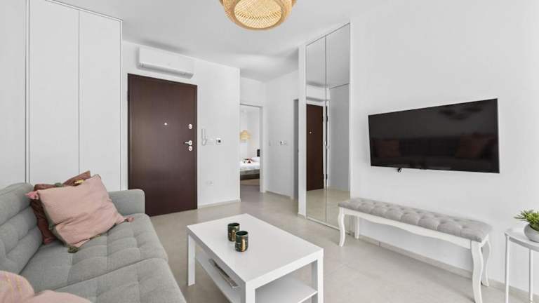 Die Wohnung ist mit zwei Schlafzimmern, einem Badezimmer, Bettwäsche und Handtüchern ausgestattet. Ein Flachbild-TV mit Satellitenkanälen sorgt für Unterhaltung. Die voll ausgestattete Küche ermöglicht das Zubereiten eigener Mahlzeiten.
