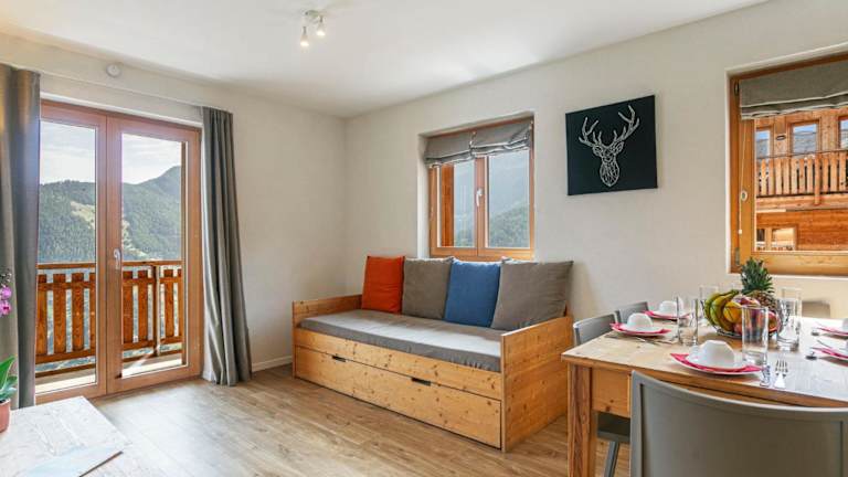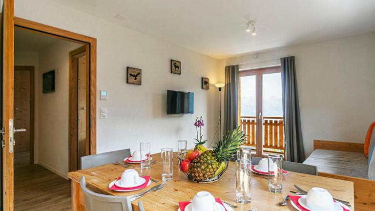 Das Apartment T-Resort La Tzoumaz 3p6 vue vallée by Interhome bietet kostenloses Wifi und eine Bar. Gäste haben Zugang zu einem Balkon sowie einer Terrasse mit Blick auf die Berge.
