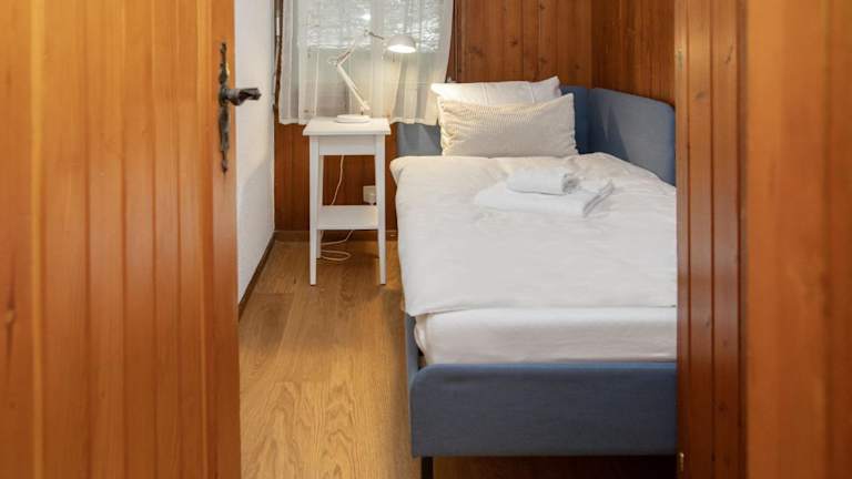 Die Ferienwohnung verfügt über 2 Schlafzimmer, einen TV mit Kabelkanälen sowie eine gut ausgestattete Küche mit Kühlschrank und Ofen. Zudem gibt es 1 Badezimmer mit Dusche. Für zusätzlichen Platz ist ein Zustellbett verfügbar, welches gegen Aufpreis gebucht werden kann.