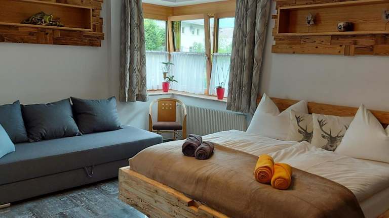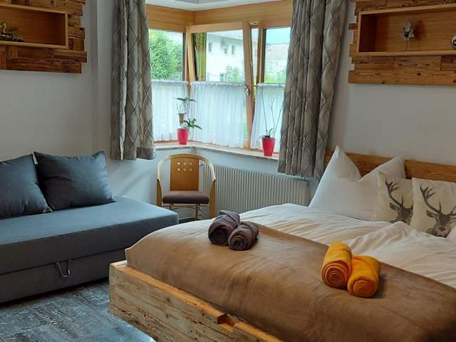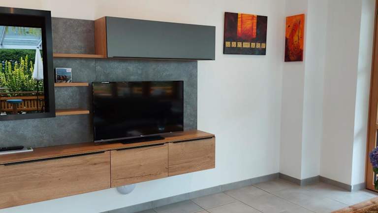 Die Ferienwohnung umfasst 2 Schlafzimmer, ein Wohnzimmer mit Satelliten Flachbild-TV, eine gut ausgestattete Küche sowie 1 Badezimmer mit Dusche und Badewanne. Eine Terrasse mit Blick auf die Berge trägt zur Bequemlichkeit der Gäste bei. Handtücher und Bettwäsche werden bereitgestellt.