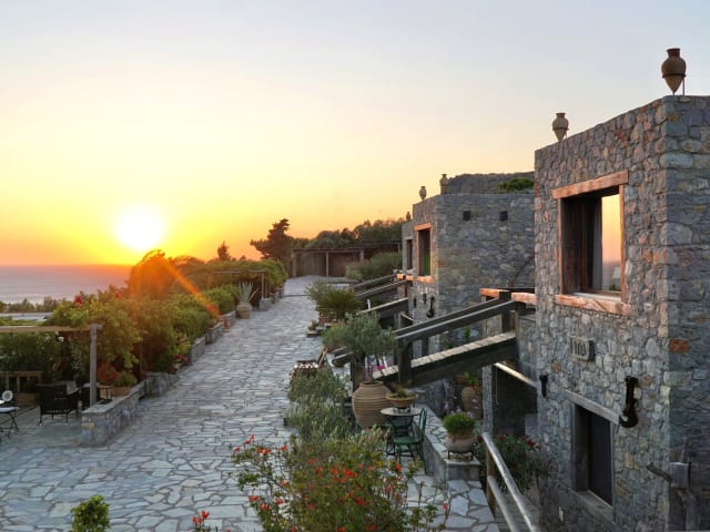 Die Unterkunft Terra Minoika Boutique Resort befindet sich in Káto Zákros in der Region Lasithi, etwa 35 km vom Palmenstrand von Vai entfernt. Der nächstgelegene Flughafen ist der Flughafen Sitia, welcher rund 45 km von der Unterkunft entfernt liegt.