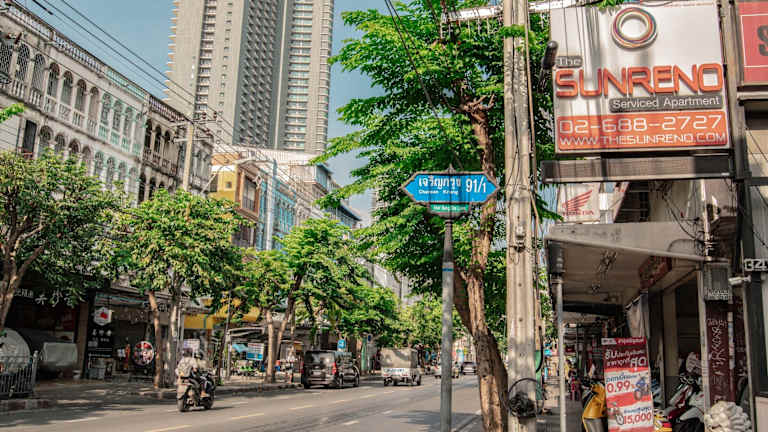 Das Apartment The Sunreno befindet sich 5 Fahrminuten von der Sathon Road und 10 Minuten von der Silom Road entfernt. Gegenüber der Unterkunft liegt der am Flussufer gelegene Shopping-Komplex Asiatique. Die Entfernung zum Flughafen Bangkok-Suvarnabhumi beträgt 40 km und Chinatown ist 6 km entfernt.