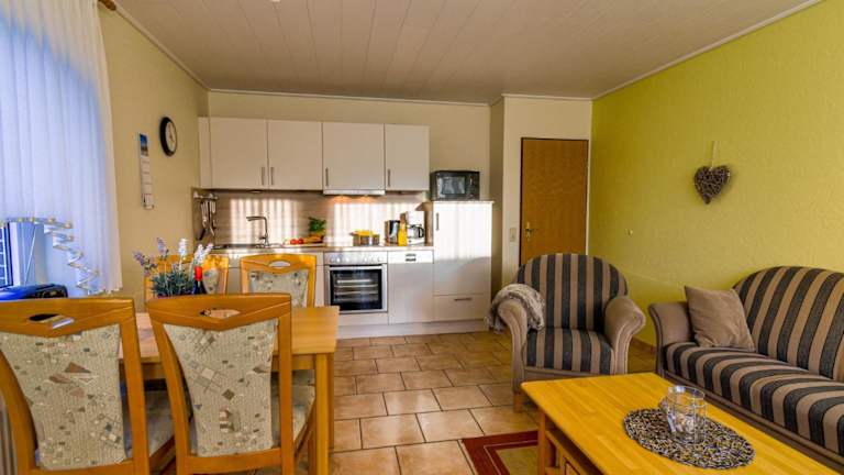 Die Ferienwohnung bietet zwei Schlafzimmer und ist ausgestattet mit einem TV mit Kabelkanälen. Die gut ausgestattete Küchenzeile verfügt über einen Kühlschrank und einen Geschirrspüler. Zudem steht ein Badezimmer mit Dusche zur Verfügung. Für Gäste mit kleinen Kindern kann auf Anfrage ein Babybett zur Verfügung gestellt werden.