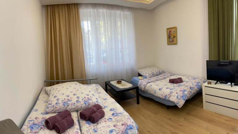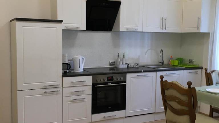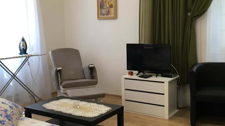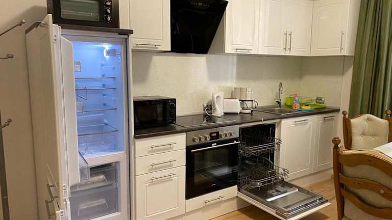 Das Privatzimmer umfasst ein Schlafzimmer sowie ein Wohnzimmer mit einem Flachbild-TV mit Satellitenkanälen. Zudem steht eine voll ausgestattete Küchenzeile mit Kühlschrank und Geschirrspüler zur Verfügung. Es gibt zwei Badezimmer mit Dusche. Handtücher und Bettwäsche werden bereitgestellt.