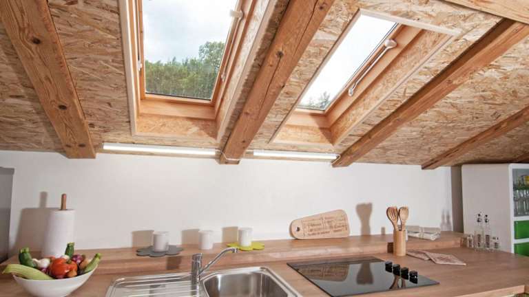 Die Ferienwohnung bietet eine voll ausgestattete Küche mit Kühlschrank und Kaffeemaschine. Zusätzlich sind verschiedene Verpflegungsmöglichkeiten in der Nähe erhältlich.