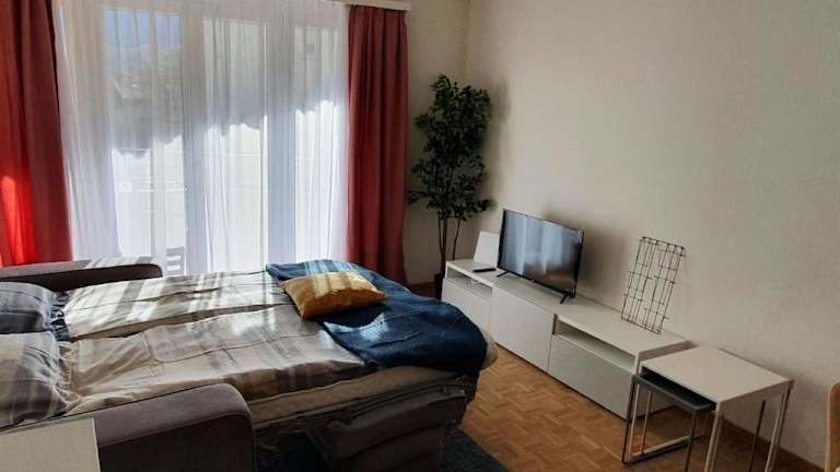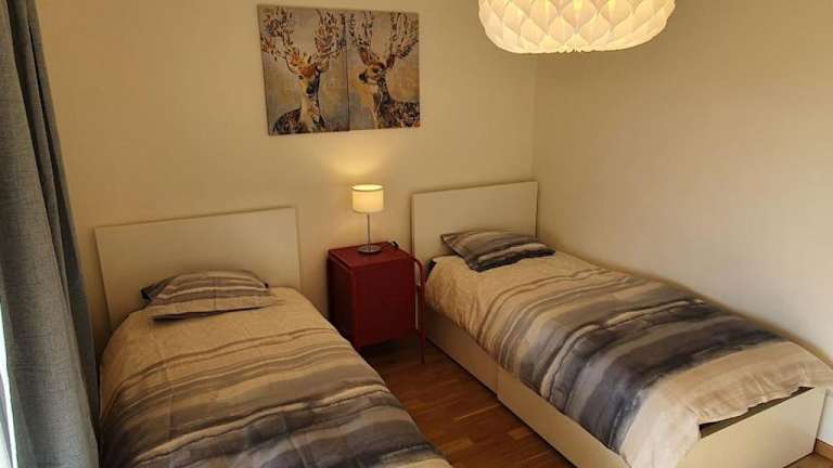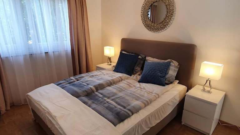 Die Ferienwohnung verfügt über einen Balkon, zwei Schlafzimmer, ein Wohnzimmer sowie eine gut ausgestattete Küche mit Kühlschrank und Geschirrspüler. Handtücher und Bettwäsche werden bereitgestellt. Die Unterkunft ist ideal für Familien oder Freunde, die eine entspannte Zeit in Muralto verbringen möchten.