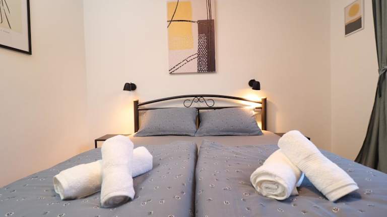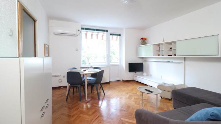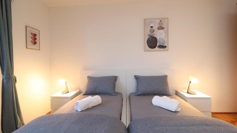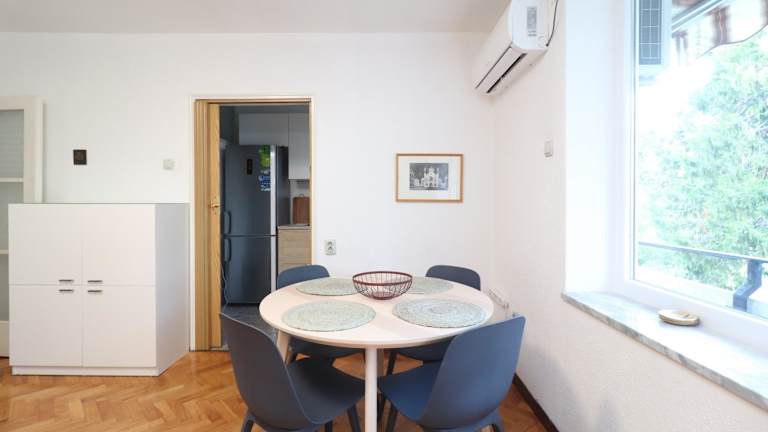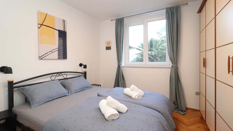 Das Apartment Vili, eine grüne Oase in unmittelbarer Nähe zum Meer, verfügt über klimatisierte Übernachtungsmöglichkeiten, einen Balkon und eine Terrasse. Die Unterkunft eignet sich nicht für Junggesellen-/Junggesellinnenabschiede oder ähnliche Feiern.
