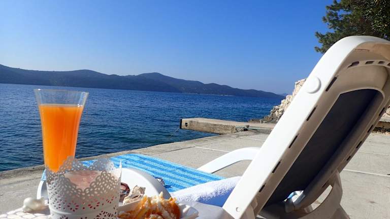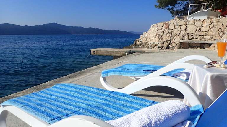 Die Unterkunft liegt direkt am Strand in Slano und bietet einen eigenen Strandbereich sowie einen Garten und eine Terrasse. In der unmittelbaren Umgebung gibt es Möglichkeiten zum Kanufahren.