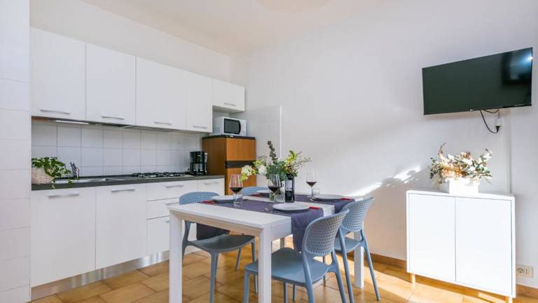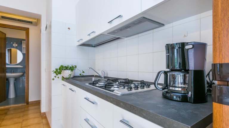 Die Ferienwohnung verfügt über 1 Schlafzimmer, ein Wohnzimmer und eine voll ausgestattete Küchenzeile mit Kühlschrank und Kaffeemaschine. Das Badezimmer ist mit einem Bidet und einer Dusche ausgestattet. Ein TV mit Satellitenkanälen sorgt für Unterhaltung, und die Klimaanlage bietet angenehme Temperaturen.