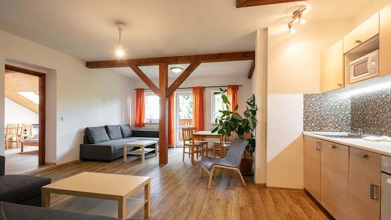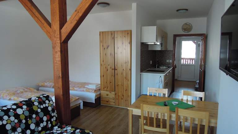 Das Apartment Vlčice u Trutnova bietet gemütliche Übernachtungsmöglichkeiten mit einem Garten, einer Terrasse und einem Zimmerservice. Die Unterkunft ist eine Nichtraucherunterkunft und eignet sich ideal für Familien. Für die Gäste steht ein Privatparkplatz ohne zusätzliche Gebühren zur Verfügung.