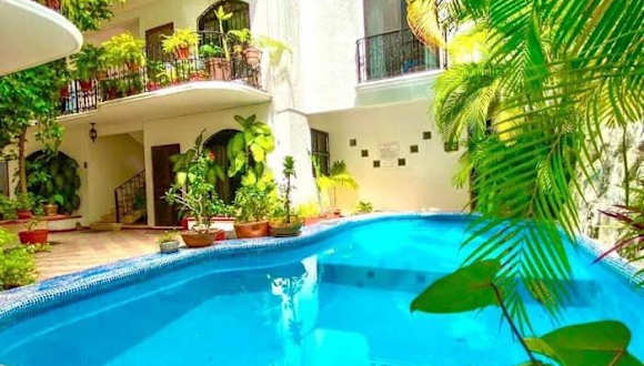Das Apartment im mexikanischen Kolonialstil bietet klimatisierte Übernachtungsmöglichkeiten mit einem Balkon, einem Aussenpool und einem Garten. WLAN und eine Parkiermöglichkeit sind ohne Aufpreis verfügbar.