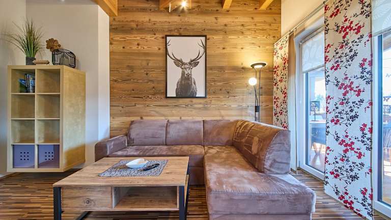 Die Ferienwohnung umfasst 2 Schlafzimmer, ein Wohnzimmer mit Flachbild-TV sowie eine gut ausgestattete Küche mit Kühlschrank und Geschirrspüler. Ein Badezimmer mit Dusche und die Bereitstellung von Handtüchern sowie Bettwäsche sind vorhanden. Die Terrasse bietet eine schöne Aussicht auf die Berge.